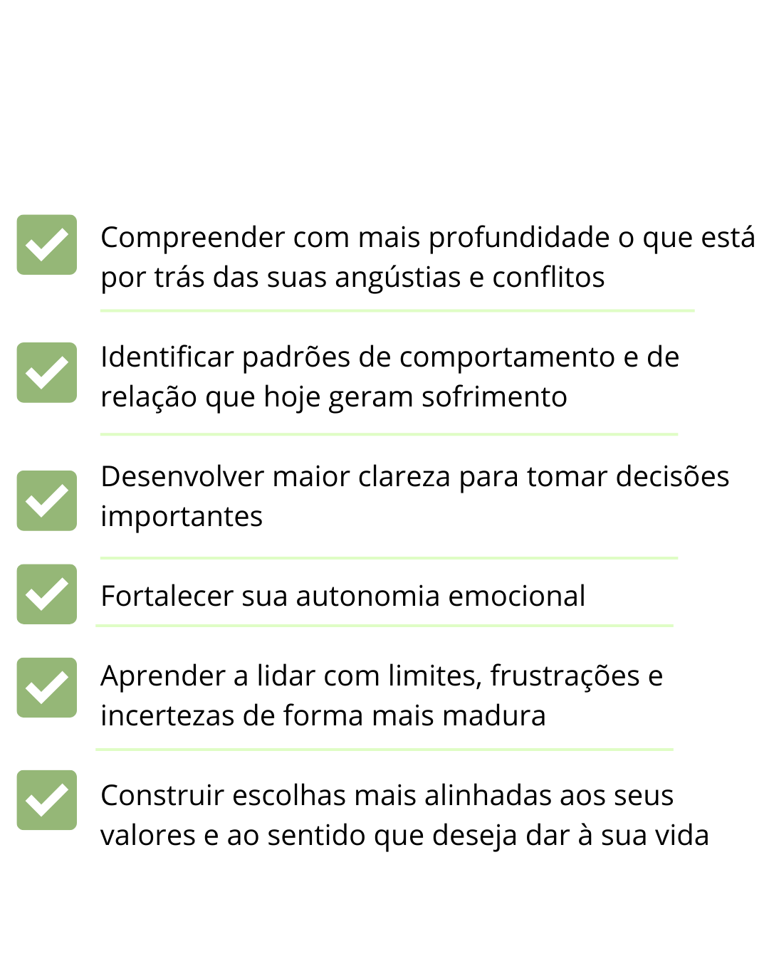 A psicoterapia oferece um ambiente acolhedor e protegido para explorar o que acontece internamente e desenvolver maneiras mais conscientes e saudáveis de se relacionar consigo mesmo(a).